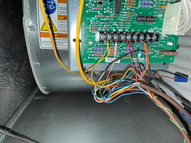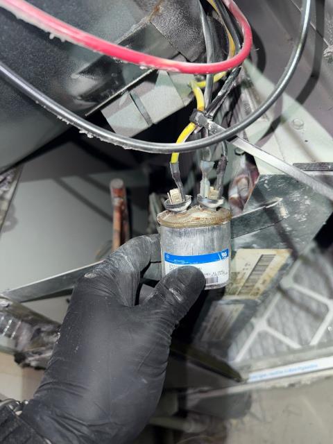 Completed AC diagnostic in Blue Bell, PA 194224. The thermostat was wired like a gas furnace instead of a heat pump. Blower motor start assist had blown, leaving the motor unable to run—the unit was not operational.