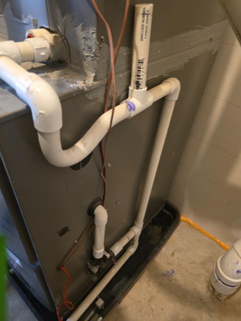 Just completed a service call in Warrington, PA 18976 for a homeowner experiencing significant condensation under the AC pan during humid weather. Found a clogged condensate trap and replaced it with a cleanable EZ trap equipped with an overflow switch. System now draining properly and ready for reliable operation.
